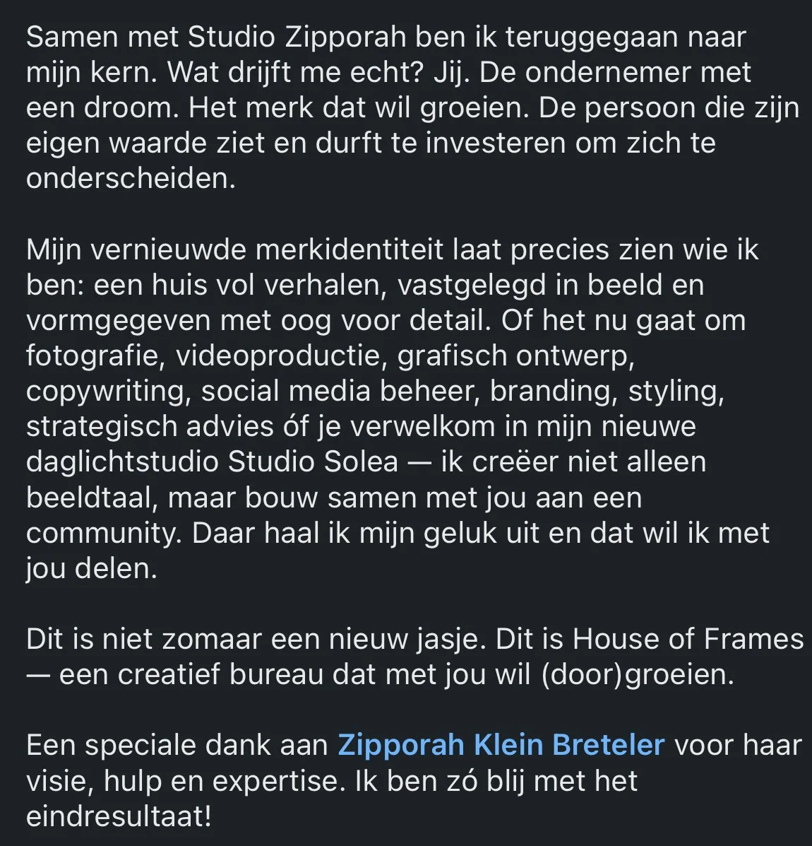 Ik help founders en ondernemers hun identiteit en visie vertalen naar een merk dat net zo sterk staat als hun expertise.